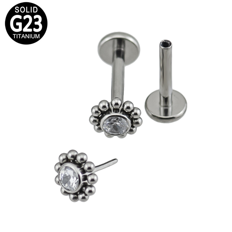 G23 Titanium Push in CZ Blaze Set With Beads Surround Side Tops Labret