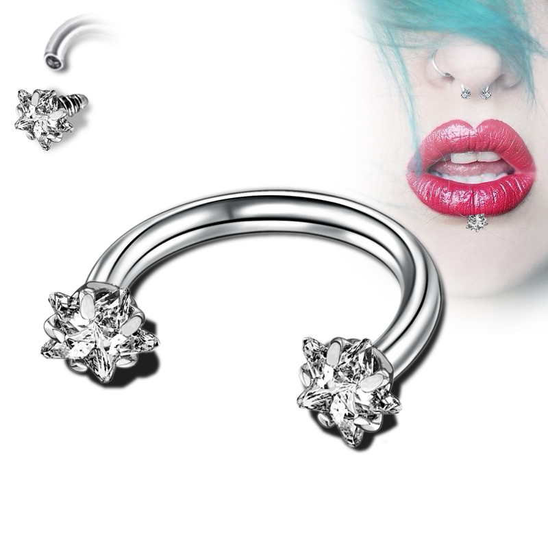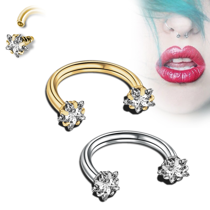 Prong Set Star Clear CZ Internally Threaded 316L Surgical Steel Hoseshoe